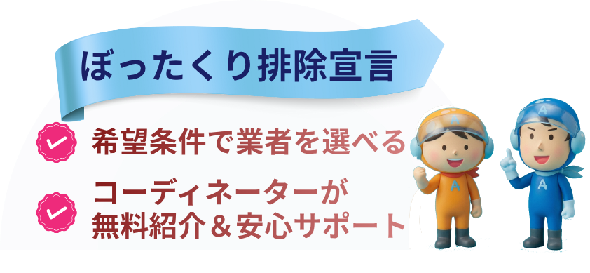業者を呼んだ事がないからどうしたらいいの?と感じ不安になりますよね。このサイトでは悪質業者は徹底排除していきます。まずご相談ください