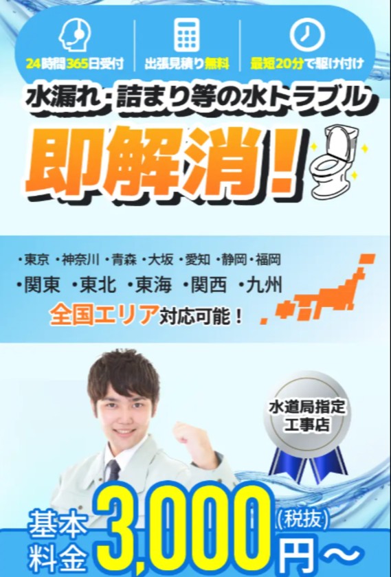【年間1万件超の実績】水道総合サービス|24時間365日・最短20分で駆けつけ!